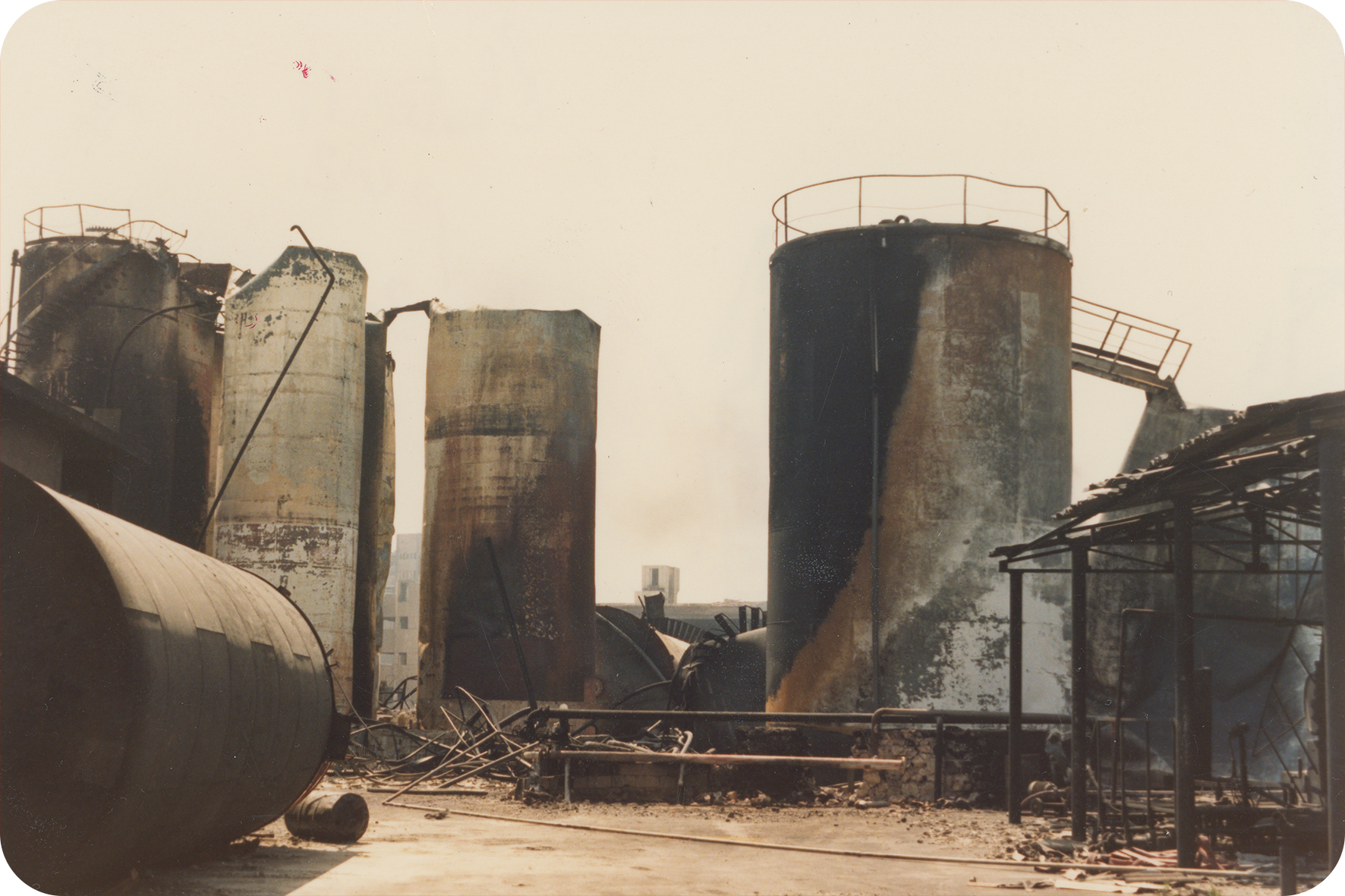 Image taken by Dr. Pierre Malychef documenting the 1989 Dora Port Explosion and its aftermaths on March 30th 1989. For more information on the explosion, please go to: https://dark.society.systems/contribution/a-history-of-ammonia/
