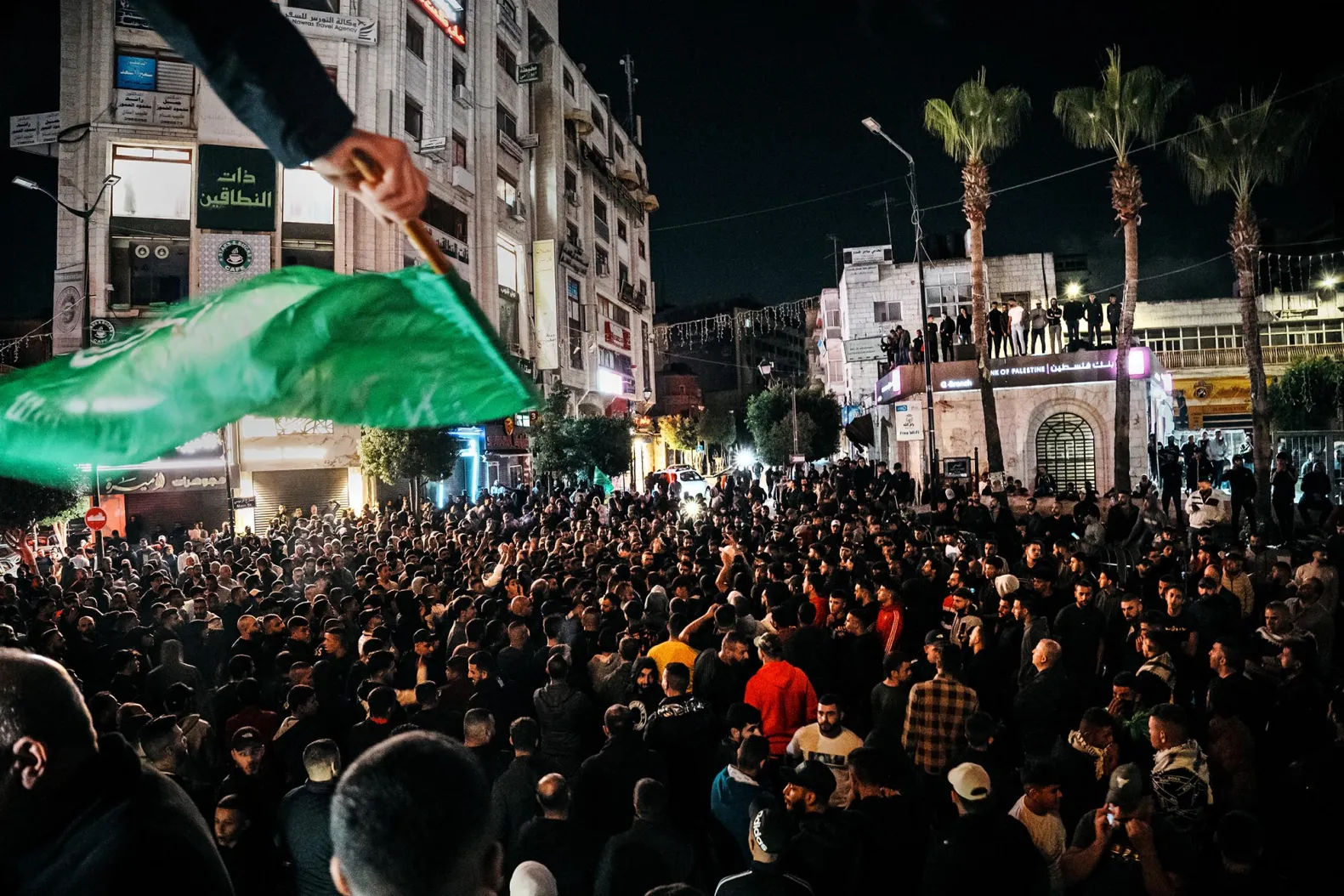 تجمّع آلاف الفلسطينيين في رام الله لدعم المقاومة في غزة وإدانة حكم محمود عباس في السلطة الفلسطينية – أكتوبر 2023